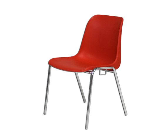 Sedia per giudici con scocca di polipropilene colorato fissata su telaio in acciaio cromato. Modello con schienale impilabile e agganciabile.
