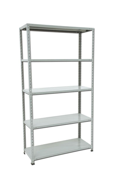 Scaffalatura in lamiera a 5 ripiani posizionabili ad altezza variabile. Dimensioni cm 100x40x200. Facilmente assemblabile.