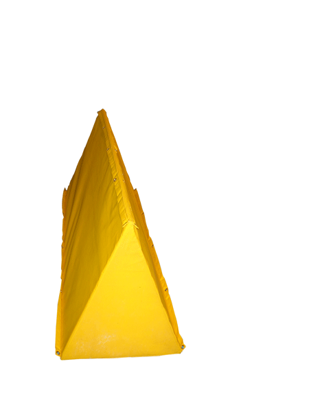 Elementi di separazione e protezione bordo campo in gomma espansa rivestita di pvc ignifugo, sezione triangolare, base cm 200×50, altezza cm 75