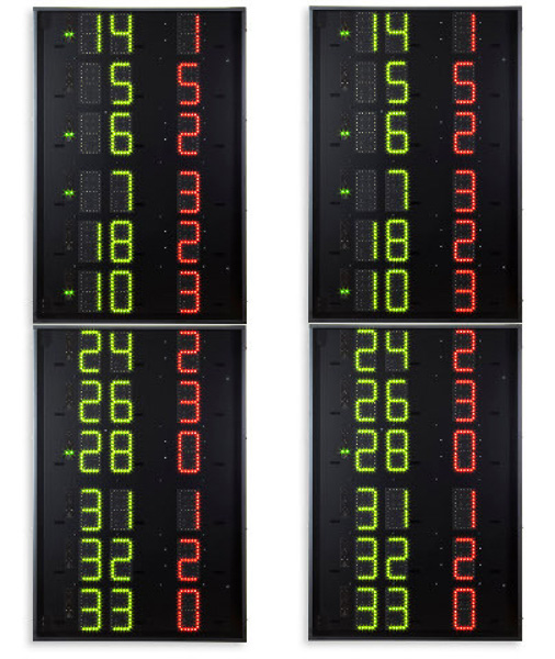 Coppia guanciale laterali FS-412D con visualizzazione nr di maglia di 12 giocatori (programmabili), falli personali in cifre, dimensione di ciascun guanciale cm 80×240