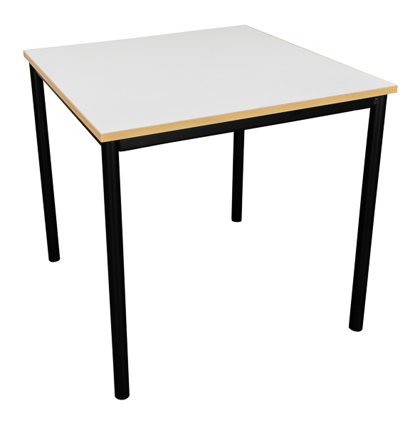 Tavolo per spogliatoio. Struttura di acciaio verniciato con piedini gommati. Dimensioni cm 80X80x76.
