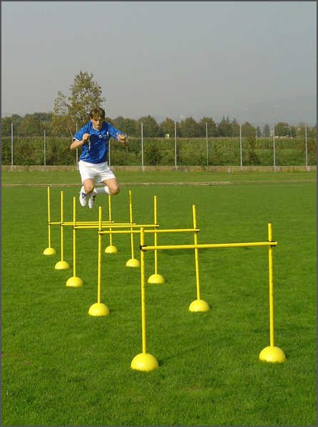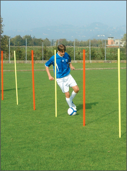 Sagoma snodata in plastica rigida per allenamento, con puntali per fissaggio a terra