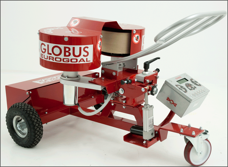 Macchina spara-palloni Globus Eurogoal 1500 funzionale ad un allenamento completo per il calcio, in grado di effettuare tiri in porta per allenamento dei portieri, cross ed assist per allenamento degli attaccanti; regolazione della velocità di uscita della palla fino a 140 km/h; regolazione della traiettoria del tiro e degli effetti imprimibili al pallone; funzionamento a batteria ricaricabile