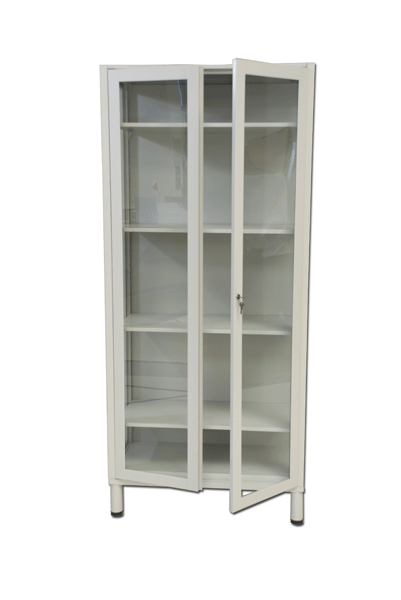 Armadio con pareti a vetri temperati e singola anta a battente. Dotato di 4 ripiani interni posizionabili ad altezza variabile. Dimensioni cm 80x40x180. Chiusura a chiave. Piedini regolabili.