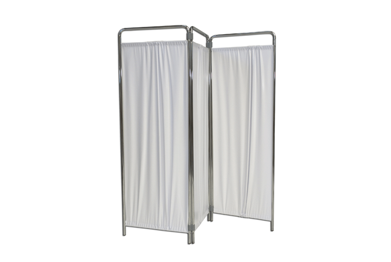 Paravento a 3 ante. Struttura di acciaio cromato, pieghevole. Ante di tessuto. Dimensioni cm 195×185.