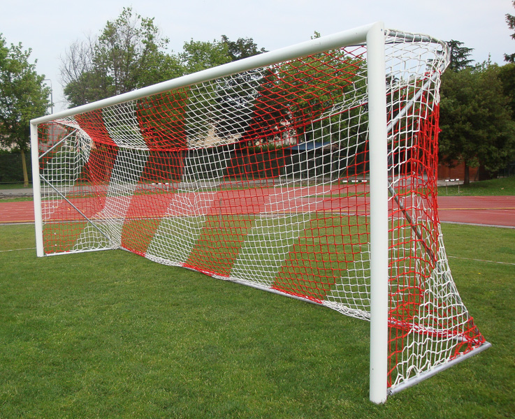 Coppia reti calcio regolamentari in polipropilene diametro mm 6, profondità cm 100/200, maglia cm 10×10 senza nodo