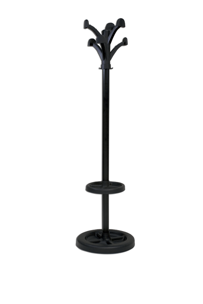 Appendiabiti a colonna di acciaio verniciato a 6 posti, completo di vaschetta raccogli gocce e grucce in plasica rigida.