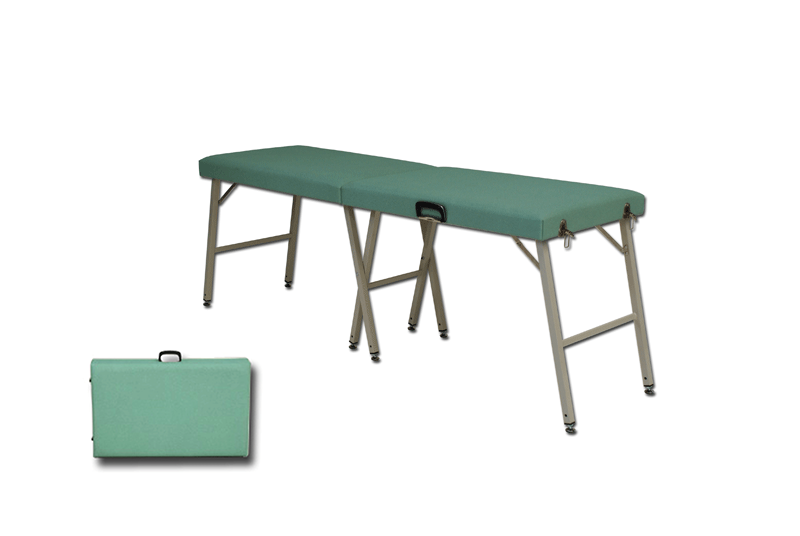 Lettino per visita medica e massaggi chiudibile a valigia e trasportabile. Struttura in tubolare di acciaio plastificato. Piani in legno imbottiti in poliuretano e rivestiti di tessuto sintetico lavabile. Dimensioni totali cm 185x56x75.