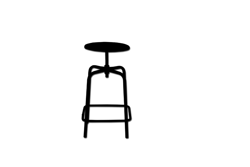 Sgabello girevole con struttura di alluminio e piedini in gomma. Regolabile in altezza a mezzo vite senza fine.