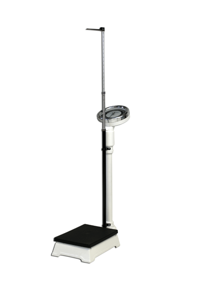 Bilancia pesa persone con statimetro. Robusta struttura in acciaio verniciato a colonna. Portata kg 120. Statimetro regolabile fino a cm 190. Piedini gommati.