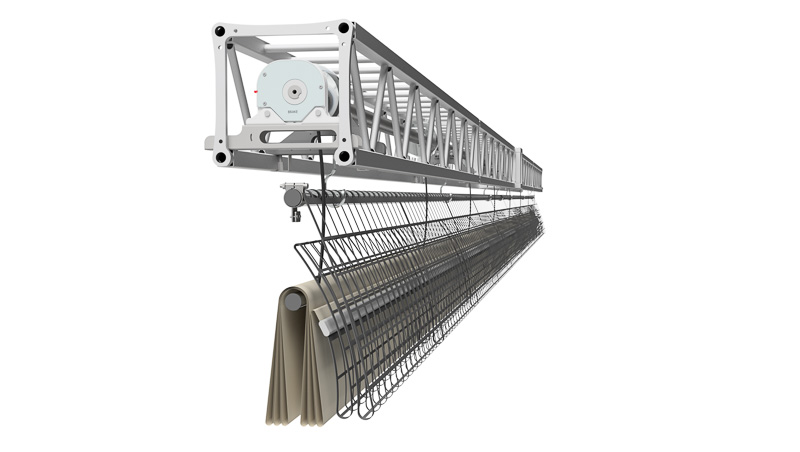 Rete divisoria e di protezione per campi gioco a maglia cm 10×10 per tutta l’altezza, scorrimento verticale con funzionamento elettrico