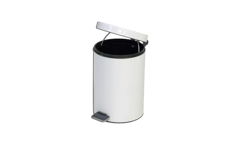 Porta rifiuti in acciaio verniciato con coperchio apribile a pedale e cestello interno asportabile in plastica.