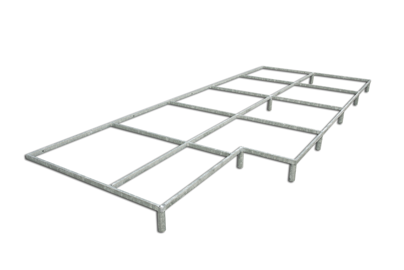Piattaforma di sostegno e sollevamento area di caduta, di acciaio zincato a caldo con struttura completa di piedini. Dimensioni compatibili con l’area di caduta. Prezzo al mq