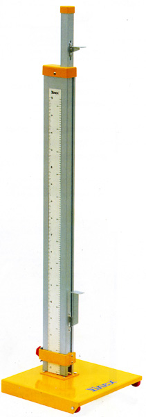 Misuratore di controllo per salto in alto di alluminio centimetrato, regolabile fino a cm 300. Completo di basamento, bolla e cursore.