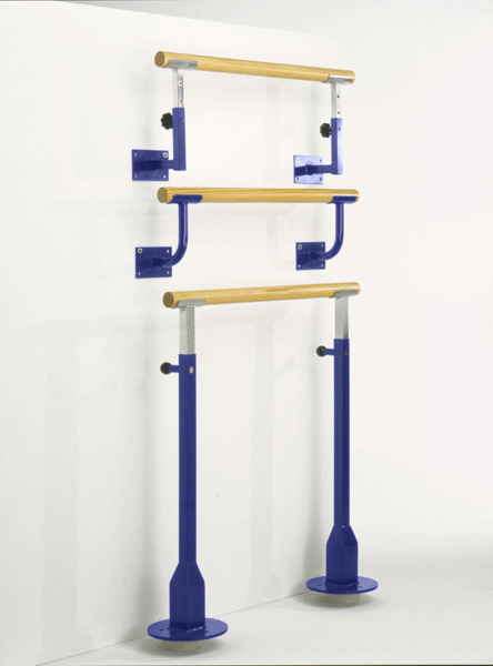 Le sbarre danza in produzione possono essere fornite in lunghezze diverse e dotate di supporti a parete, fissi o regolabili, o a terra.