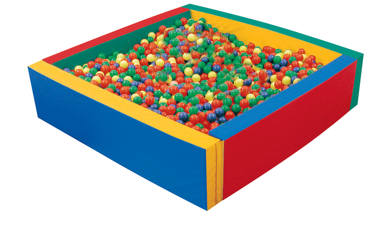 Piscina quadrata con con elementi accostabili mediante velcro realizzati in materiale espanso rivestito di pvc colorato. Palline escluse.