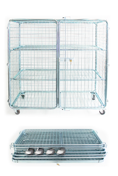 Armadio porta attrezzi con pareti in rete metallica e 2 ripiani, dimensioni cm 155x75x160, mobile su ruote, smontabile