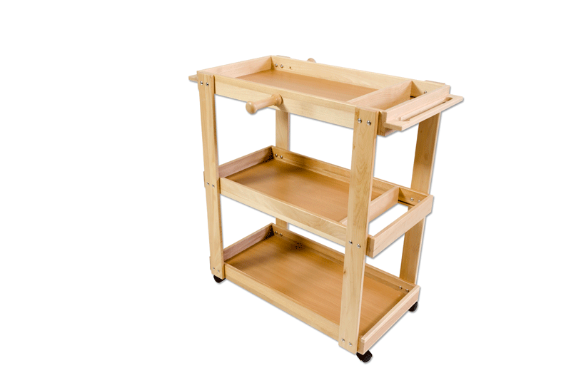Carrello porta attrezzi di legno massiccio a 3 ripiani, mobile su ruote girevoli, competo di maniglie, dimensioni totali cm 95x70x100