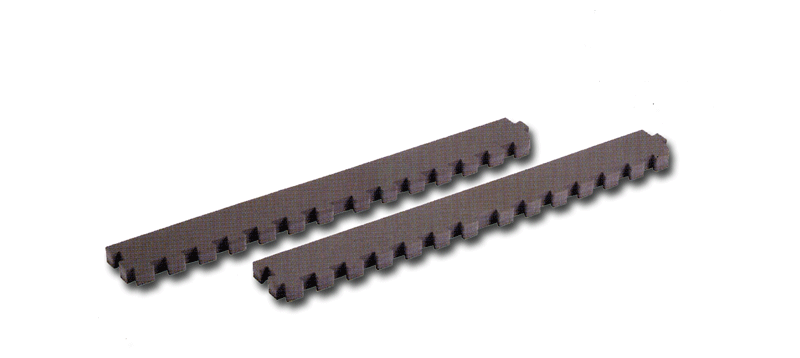 Elemento di bordatura laterale, lunghezza cm 100, per tappeto karate. Realizzato in polietilene stampato con superficie zigrinata, incastri a coda di rondine su un lato e finitura liscia del lato opposto.