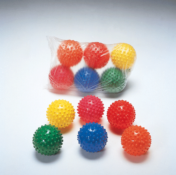 Pallina di gomma bugnata colorata, diametro 12 cm, peso gr 100.