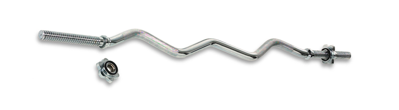 Bilanciere angolato da allenamento di acciaio cromato, diametro mm 25, impugnatura zigrinata, completo di morsetti rapidi di bloccaggio. Lunghezza cm 145.