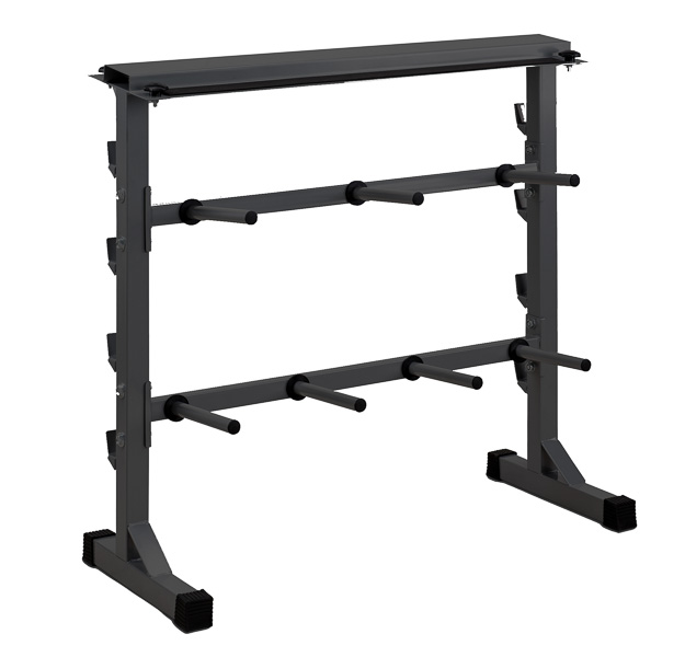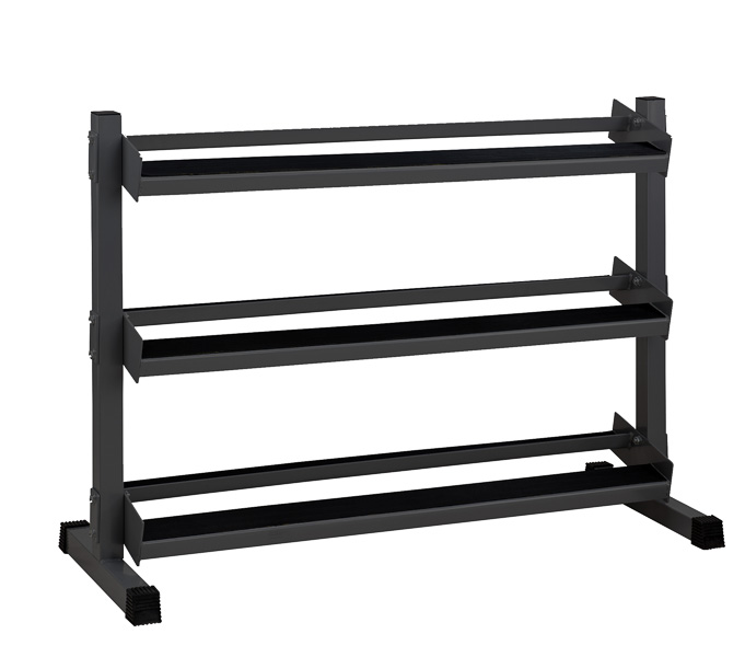 Rastrelliera porta manubri a tre ripiani in acciaio verniciato. Piedini gommati.