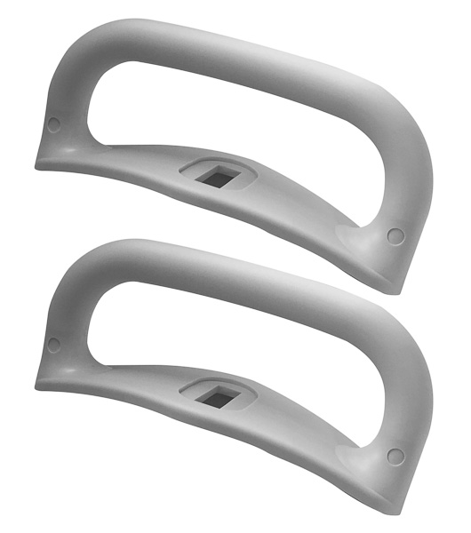 Coppia di maniglie in poliammide e vetroresina per cavallo, regolabili in larghezza. Complete di perni di fissaggio al fusto del cavallo.