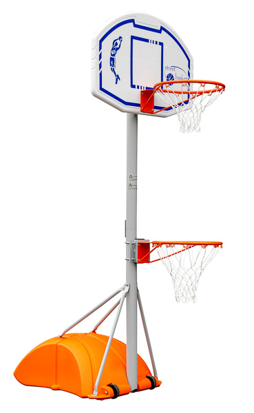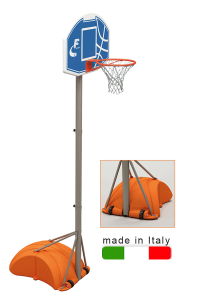 Struttura basket e minibasket trasportabile, base zavorrabile, palo in acciaio, tabellone in polipropilene con canestro fisso e retina