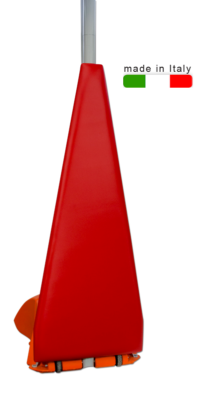 Coppia protezioni frontali per impianto basket S04038. Pannello di legno imbottito e rivestito di PVC lavabile, forma triangolare con altezza cm 200. Fissaggio a mezzo viti.