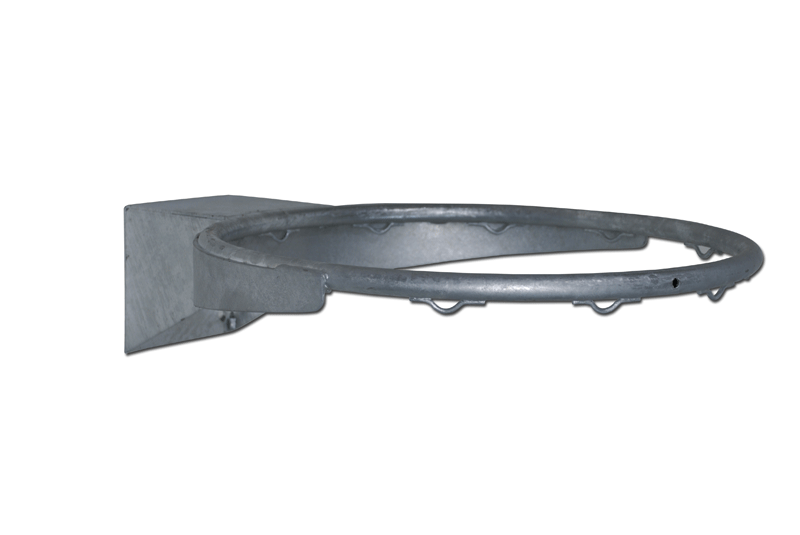Canestro regolamentare reclinabile in 3 direzioni (anche lateralmente) in tubo pieno di acciaio verniciato a norma EN 1270, fissaggio retina senza ganci