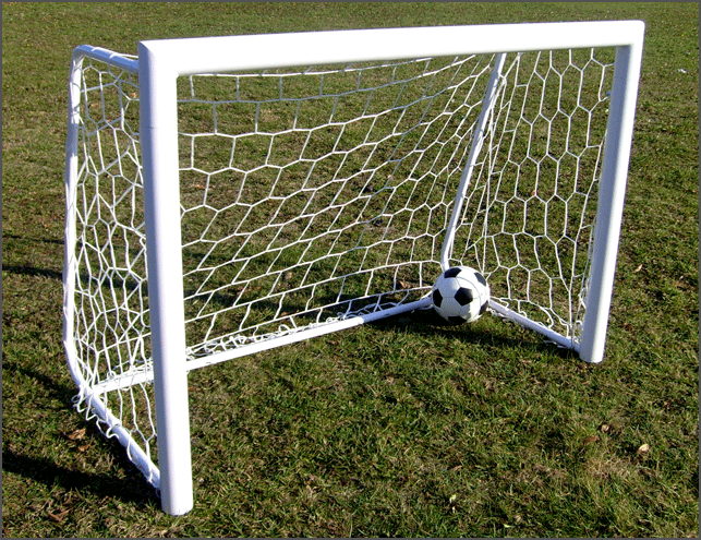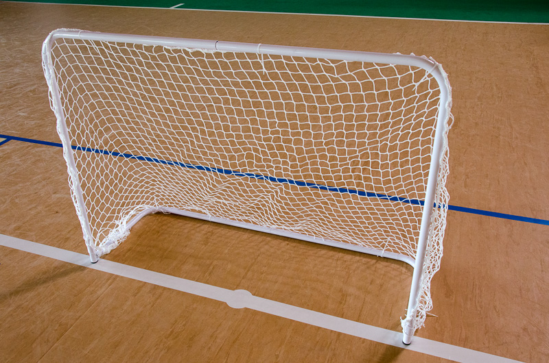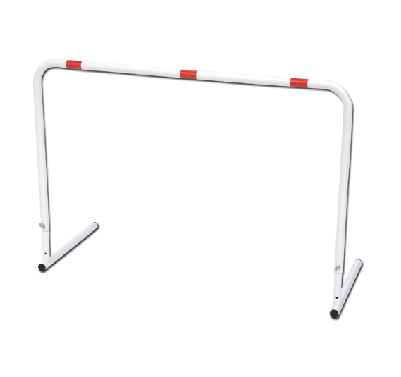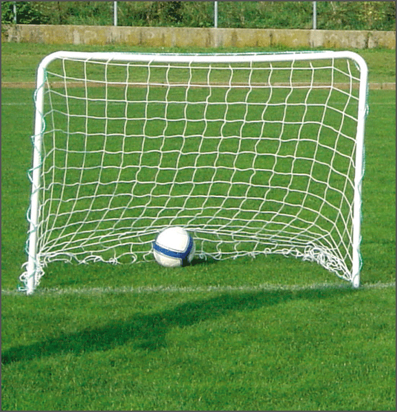 Coppia porte mini-calcio con dimensioni cm 150×110. Componibili mediante elementi in tubolare di acciaio verniciato. Complete di reti di nylon, fascette per fissaggio reti e picchetti in acciaio zincato per fissaggio a terra.