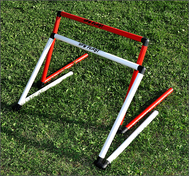 Ostacolo in PVC richiudibile con meccanismo a molla, altezze regolabili da cm 10 a cm 60