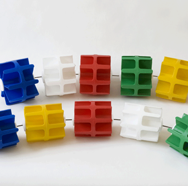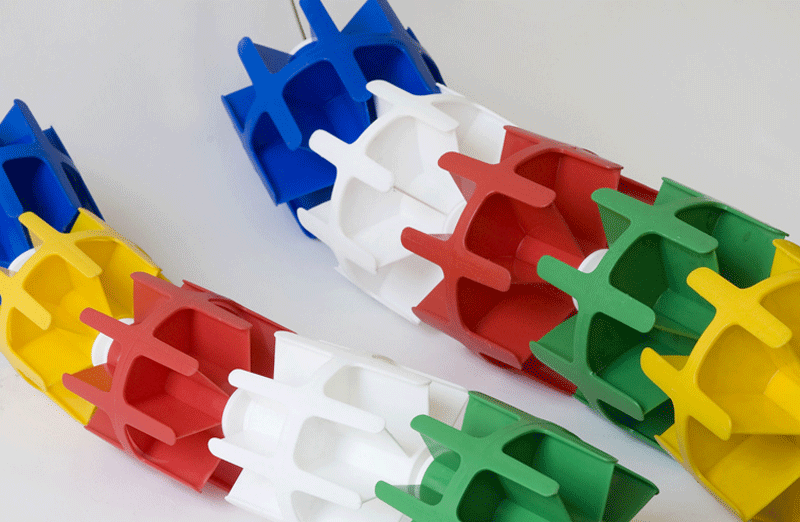 Corsia frangionda galleggiante con elementi in polipropilene colorato, diametro mm 110, completa di cavo, tenditore e molla, lunghezza mt 50
