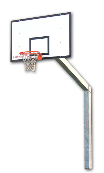 Struttura streetball a bussole, monotubolare di acciaio zincato a caldo con sezione mm 150x150x3 e sbalzo totale cm 225, realizzata in un unico elemento. Completa di bussola da interrare in acciaio zincato con coperchio, tabellone di resina melamminica con dimensioni cm 180×105 e spessore mm 10 montato su telaio perimetrale di acciaio zincato collegato con tirante di rinforzo alla struttura principale di sbalzo, canestro fisso in acciaio verniciato e retinea di nylon.
