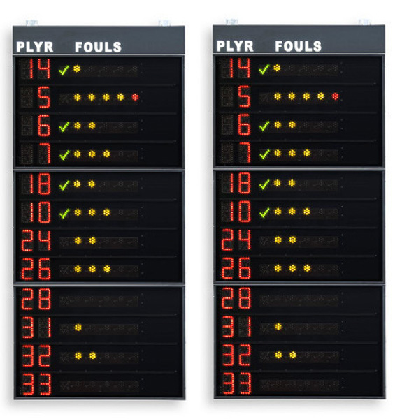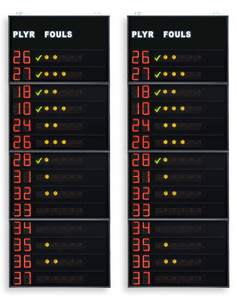 Coppia guanciale laterali FS-414B con visualizzazione nr di maglia di 14 giocatori (programmabili) e falli personali a punti luminosi, dimensione di ciascun guanciale cm 120×320