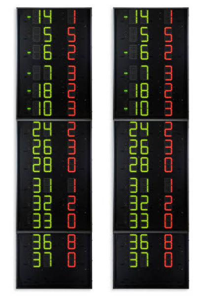 Tabellone elettronico FS160 per la visualizzazione dei punteggi dei set per la pallavolo, dimensioni cm 200×60, integrabile ad un qualsiasi tabellone della linea FS