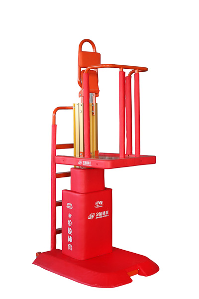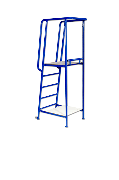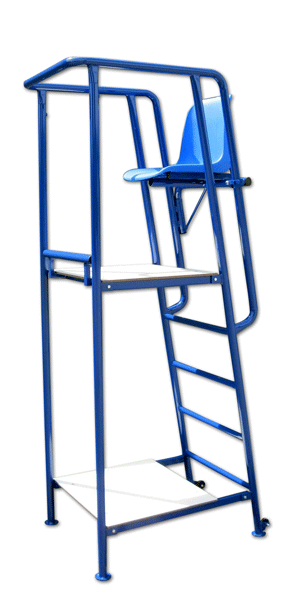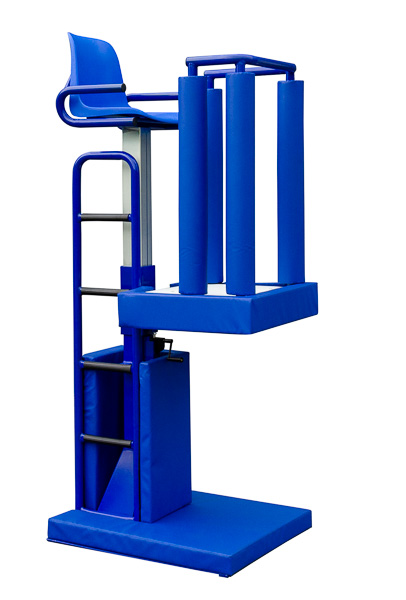 Palchetto per arbitro pallavolo, omologato FIVB per competizioni internazionali. Robusta struttura in scatolato di acciaio verniciato con sistema interno di regolazione dell’altezza. Scaletta di accesso, parapetto frontale, seduta e ruote per il trasporto integrate alla base.