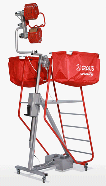 Macchina spara-palloni Globus Winshot 1000 funzionale ad un allenamento completo per il volley, in grado di simulare servizi, alzate e schiacciate; regolazione della velocità di uscita della palla fino a 140 km/h; regolazione della traiettoria del tiro e degli effetti imprimibili al pallone; funzionamento a batteria ricaricabile