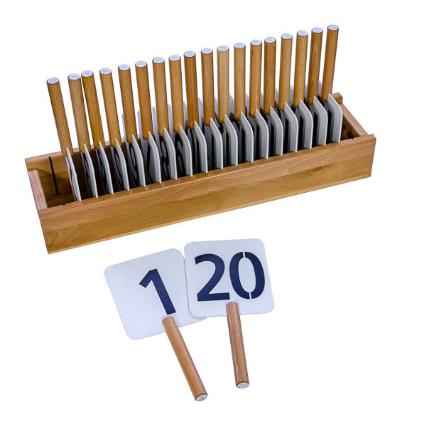 Serie palette per sostituzione giocatori di legno, numerate, complete di supporto in legno. Serie di 20 pezzi (1-20).