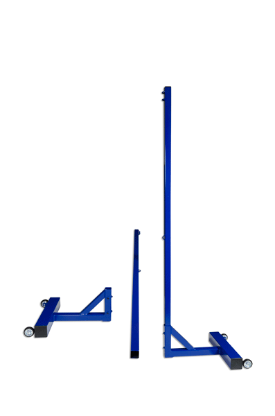 Coppia pali minivolley in acciaio verniciato, base zavorrabile e mobile su ruote, smontabili
