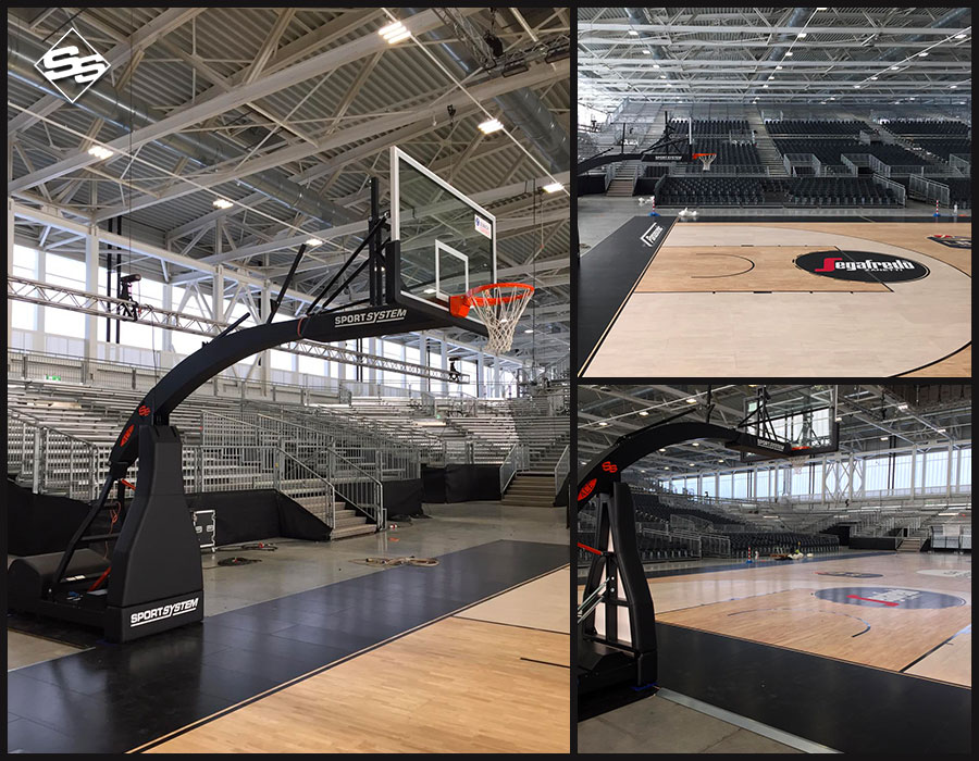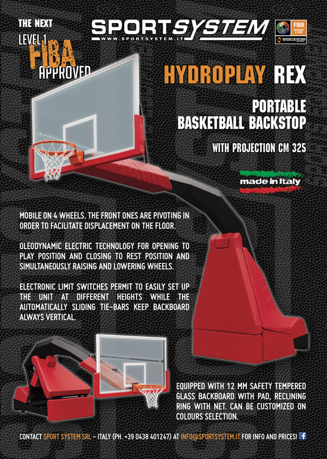 Nel video con gli highlights della partita è ben riconoscibile l’impianto basket Hydroplay ACE di Sport System, articolo S04100, nella versione con struttura verniciata di colore bianco e protezioni di colore nero personalizzate con il logo dell’evento organizzato da FIBA. L’impianto basket Hydroplay Ace mobile su ruote, con sbalzo di 325 centimetri, è dotato di un sistema oleodinamico elettrico per la regolazione dell’altezza e per la gestione indipendente delle ruote ed è omologato FIBA per competizioni di 1° livello.