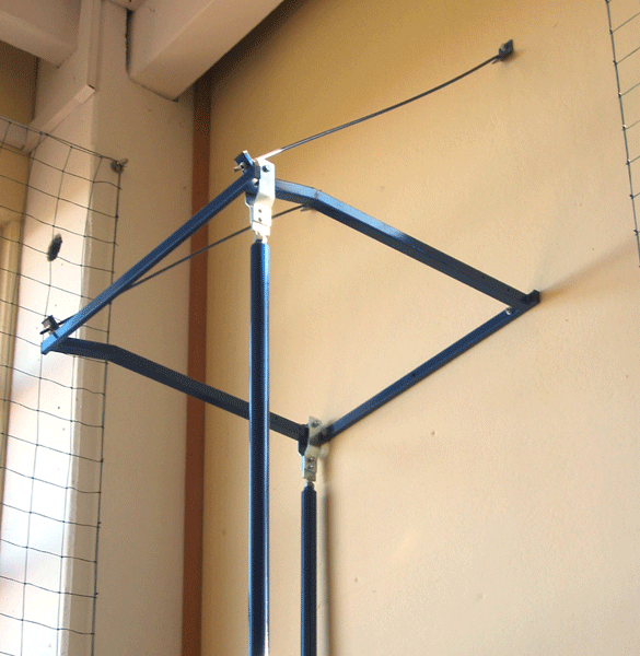 Estructura de acero pintado para apoyo y deslizamiento en la pared cuando no está en uso, equipos de escalada de pared (cuerdas de escalada, postes y escaleras), Inclinado con el fin de bloquear el equipo a la pared una vez que no está en uso. Apoyo Nro. 3 accesorios de escalada.
