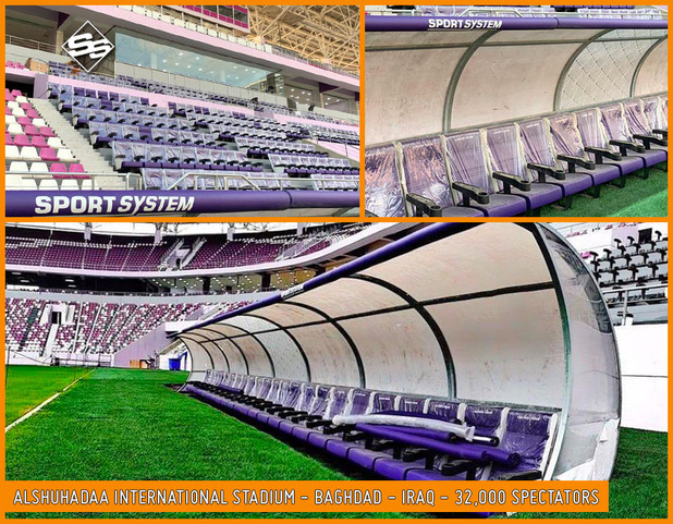 Con il supporto del partner locale iracheno che ha maturato una decennale esperienza nella costruzione di grandi stadi di calcio internazionali, Sport System ha sviluppato una completa proposta per l’arredo personalizzato del nuovo stadio internazionale ALSHUHADAA di Baghdad, con capienza di 32.000 spettatori. Il pacchetto proposto, discusso, ordinato dal cliente e quindi fornito verso la fine del 2019 comprendeva anzitutto l’arredo completo dei locali spogliatoio, inclusi moduli VIP personalizzati, e dei locali annessi e complementari; l’arredo delle sale infermeria; l’arredo della stampa e dei locali tecnici. Oltre a circa 30.000 sedute in polipropilene con schienale sono state poi fornite circa 2.000 poltrone VIP per il pubblico e 100 poltrone per l’area VVIP. Per il campo di gioco Sport System ha invece fornito le panchine VIP per le riserve, le porte di gioco complete di reti, il tunnel telescopico e l’ambulanza per il recupero dei feriti. Un progetto similare ad altri 7 già completati negli anni scorsi!